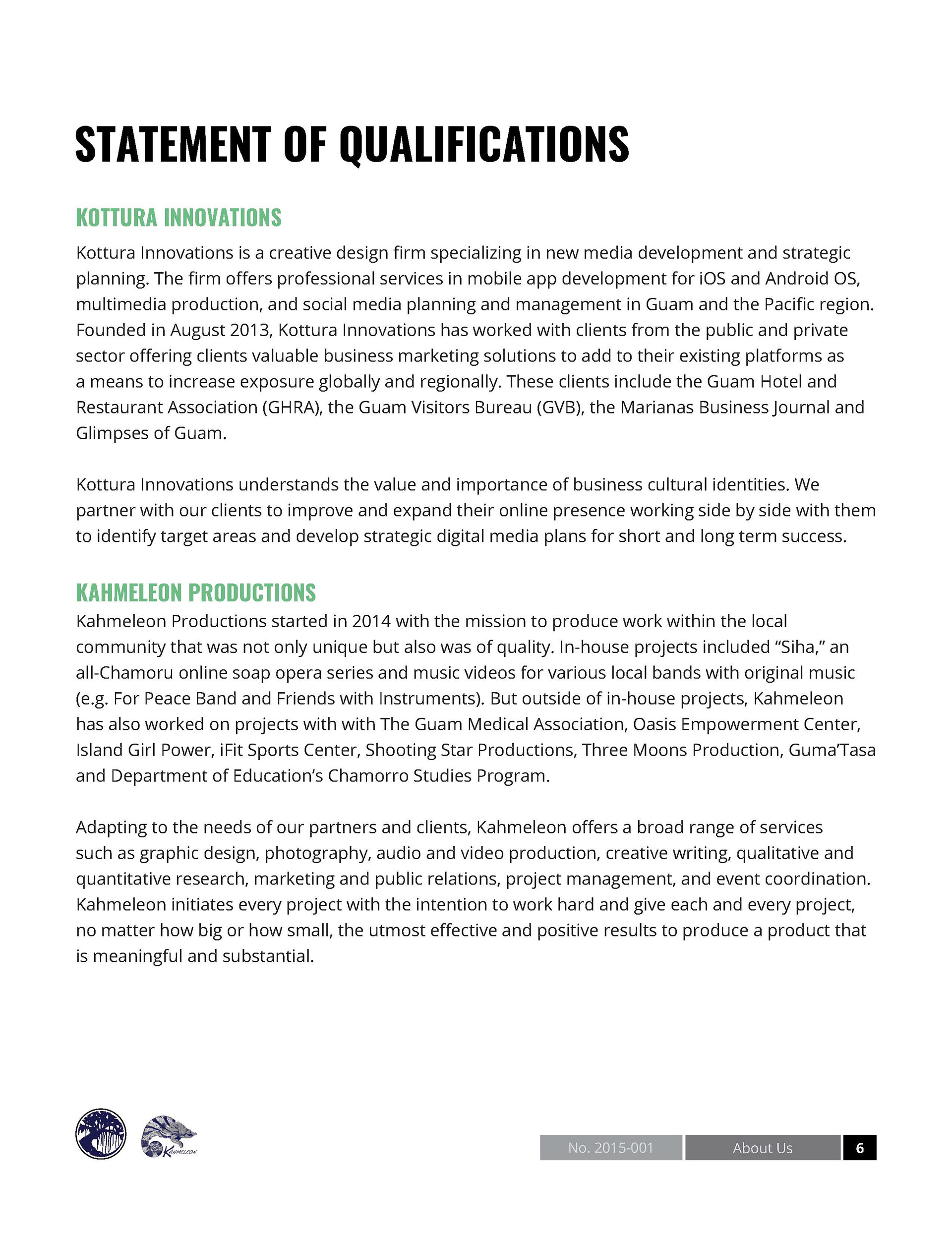 Samples from an RFP submitted to the Guam Visitors Bureau for an online academy focused on the hospitality sector. We reached the final two groups.
